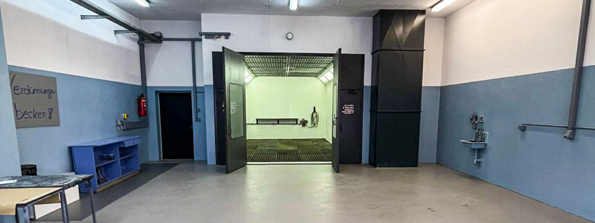 - Lackierkabine: 7m x 3,8m, Tor: Höhe 2,86m x Breite 2,37m