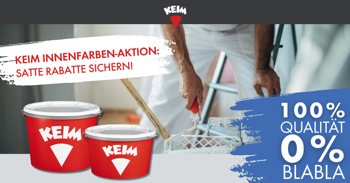 Sichern Sie sich jetzt unsere attraktive KEIM Farben Aktion in Kitzingen und profitieren Sie von 10 % Rabatt auf ausgewählte KEIM Qualitätsfarben im 12,5-Liter-Gebinde.