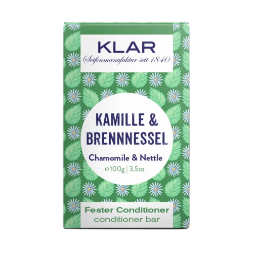 Klar’s fester Conditioner Kamille Brennnessel wurde speziell für alle entwickelt, die ihre Kopfhaut schonend beruhigen wollen und sich zeitgleich besonders geschmeidiges Haar wünschen.