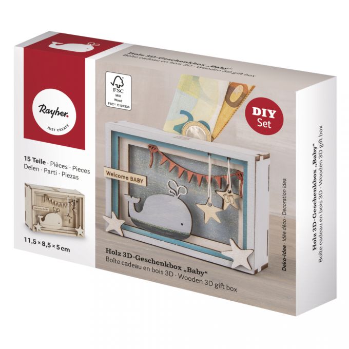 Rayher Holz 3D Geschenkbox Baby