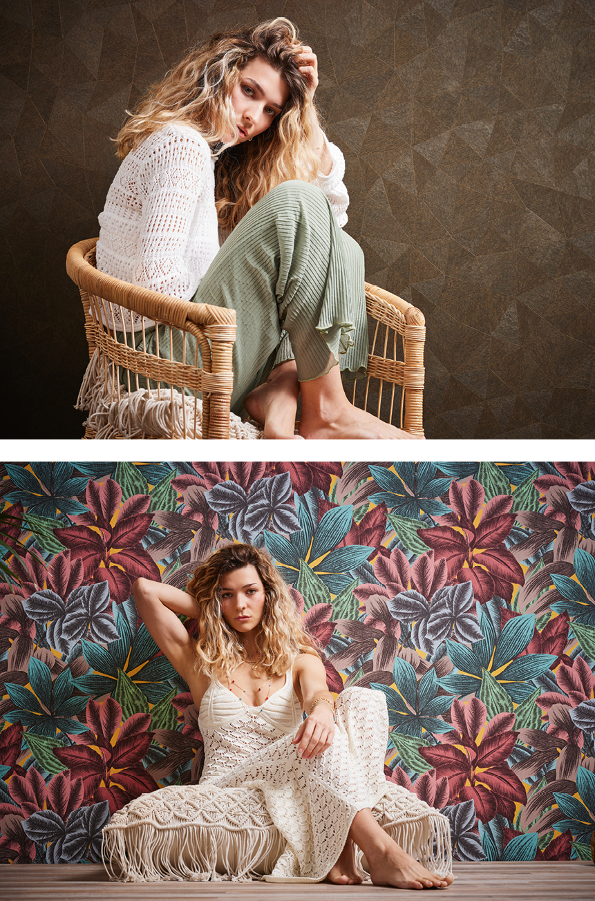 LEA Bali – Eine Reise in die traumhafte Umgebung eines fernen Landes mit einer jahrtausendealten Kultur. Die Tapeten präsentieren hölzerne, fast dreidimensionale Strukturen und nachhaltige Materialien, natürliche Grün- und Brauntöne sowie Ornamente der fruchtbaren Erde, die Tiefe erzeugen.