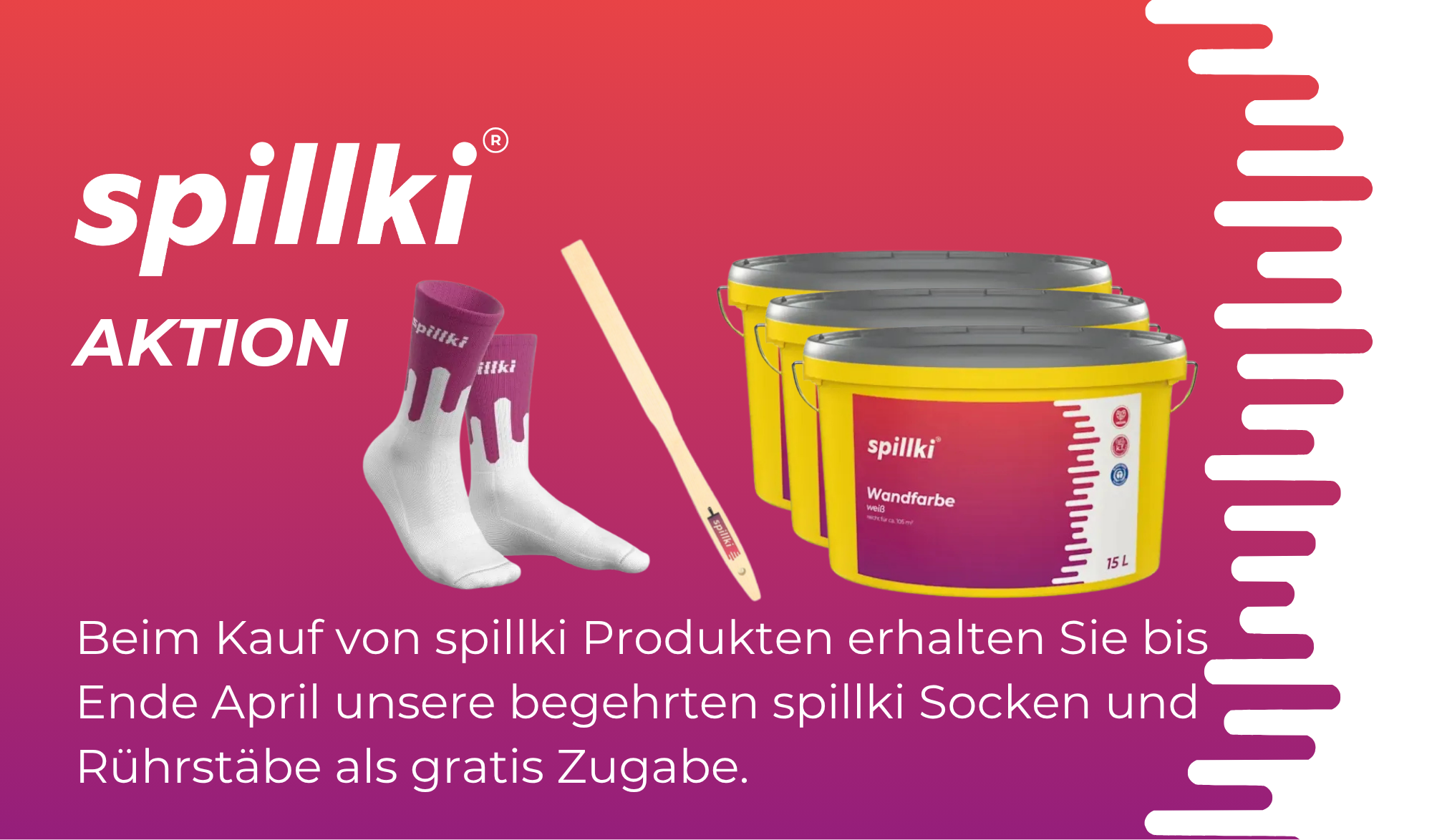 Beim Kauf von Spillki-Produkten erhalten Sie – je nach Anzahl der Farbeimer – ein praktisches Rührholz oder die beliebten Spillki-Socken.